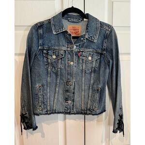 New Levi's Denim Jacket - Women's Raw Hem Lace Up Sleeves- Small