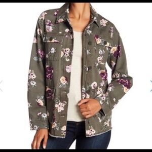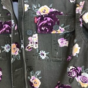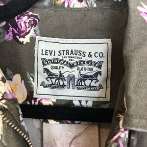 New Levi’s Floral Cotton Zip and Button Utility Jacket in Army Green