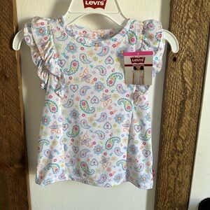 New Levi's Girls Size 4 Colorful Paisley Print Top Ruffle Layered Short Sleeves
