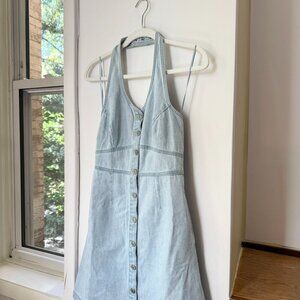 New Levis Janeesah Denim Jean Halter Short Mini Dress Button Light Wash Blue