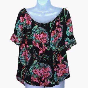 New Levis San Francisco Floral Top Peasant Flowy Tropical Off Shoulder Plus 3X
