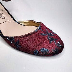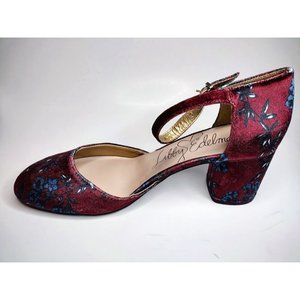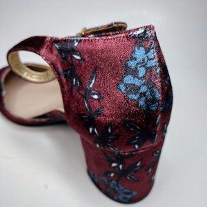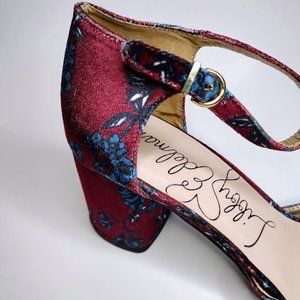 New Libby Edelman Burgundy Blue Flowers Velour Fabric Sandal Shoes