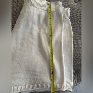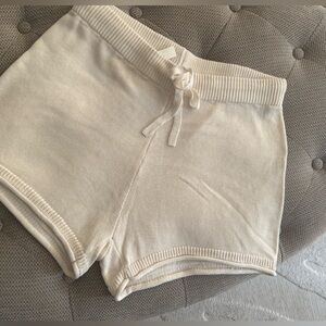 New-super adorable cream knit shorts with a ribbed waistband and drawstring detail.