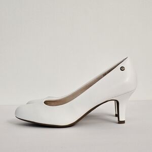 New! Life Stride Round Toe Faux Leather Low Heel White Pumps