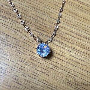 New Light Blue & White Cubic Zirconia Necklace – 16” Chain – Large Pendant Stone