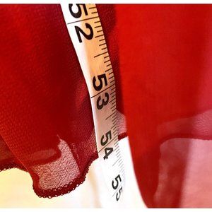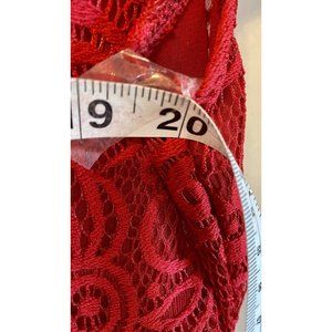 New Light, Red Flowing Lace Full Length Dress, semi sheer top, lined bottom. Measures 54” from shoulder to hem, 20” armpit to armpit, 32” waist