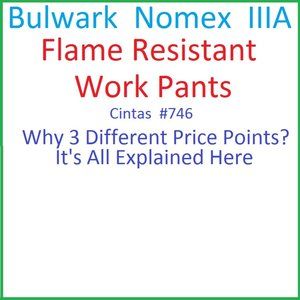 Bulwark Nomex IIIA Flame Resistant Work Pant - Cintas #746 are available in three quality levels. If purchased new from the uniform service, expect to pay $145 each and up, depending on the size. "Like New" and "Used" levels have a uniform service identification tag with a random surname beside the belt loops.