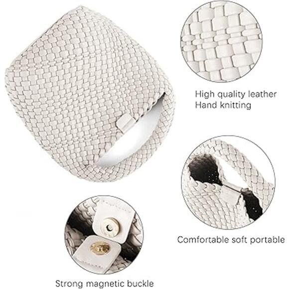 New Likebag Womens Creamy White Faux Leather Woven Handbag Purse Retro Bag