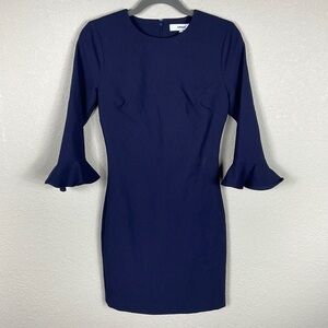 New Likely Bedford Navy Blue Three Quarter Sleeve Mini Bodycon Dress Sz 0