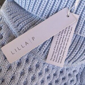 New Lilla P Turtleneck Cowl Cable Knit Boxy Sweater Top Pastel Blue Size M/L