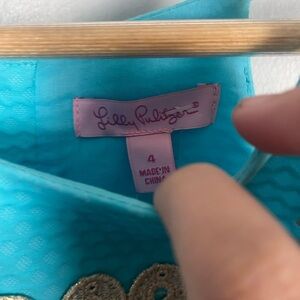 New Lilly Pulitzer Annabelle SHIFT DRESS Shorely Blue Gold Lace Stripe size 4