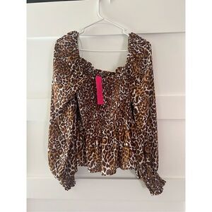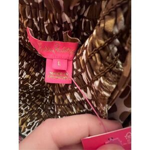 New Lilly Pulitzer Demi Long Sleeve Smocked topChocolate My Favorite Spot size L