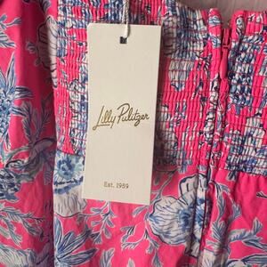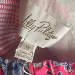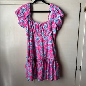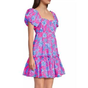 New Lilly Pulitzer Nastia Short Sleeve Cotton Dress Pink Floral Tiered Zip Sz 12