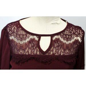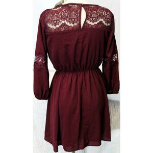 New Lily Rose Merlot Purple Dress Floral Lace 3/4 Sleeves Womens S Elastic