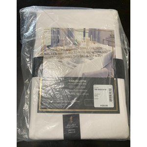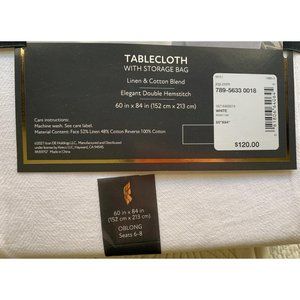 New Linen Cotton White Tablecloth Fieldcrest Rectangle 60" x 84" Herringbone