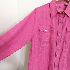 New Lino by Chico 100% Linen Button Up Long Sleeve Shirt Pink Size 1 (8-M)