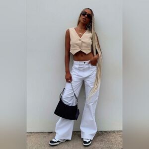 New Lioness Miami vice Wide pant white Oversized Baggy Cargo Barrel XXS Pockets. Oversized fit