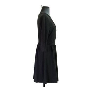 Elevate your wardrobe with this timeless black surplice dress by Duffield Lane, size Medium. Crafted from a soft and stretchy blend of 57% Cotton, 38% Modal, and 5% Spandex, this dress combines comfort and sophistication for everyday wear or semi-formal occasions.