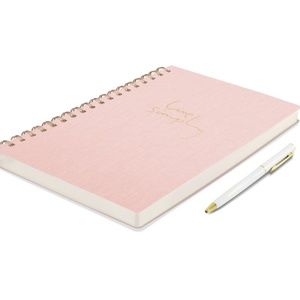 Spiral bound bookcloth notebook comes with metallic gold stamped cover. Canvas book cover.