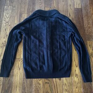 New Liverpool Mens Medium Cable Shawl Collar Cardigan Fisherman Navy Sweater