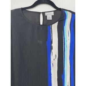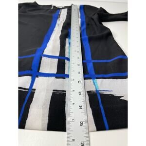 New Liz Claiborne Graphic Long Sleeve Blouse Top Back Art to Wear Office Dark S
