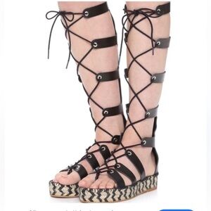 New Loeffler Randall Sacha Gladiator Platform Sandals Espadrilles Black Size 38