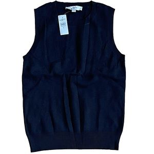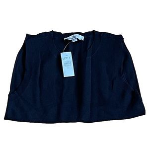 New Loft black shell in size M! Tailored in a soft knit the crew neck, sleeveless, ribbed hem can be perfectly pair with any of our loft light weight sweaters.