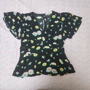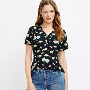 New Loft Floral Flutter Sleeve V-neck Top Size 0