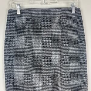 New Loft Gray Black Check Pencil Skirt Elastic Waist Womens Size Small