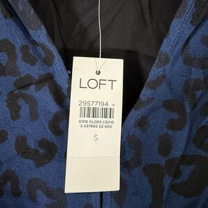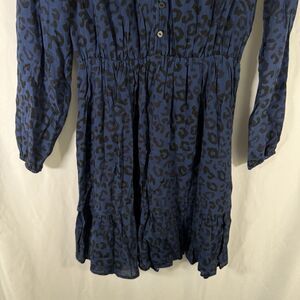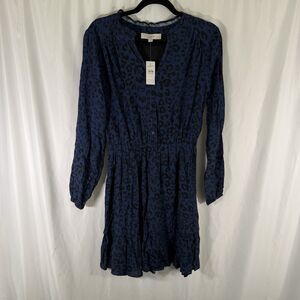 New Loft Mini Dress Women's Small Blue Black Cheetah Print Long Sleeve Button Up