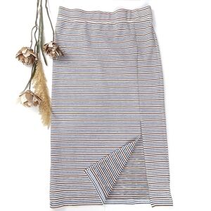 New Loft White Blue Tan Front Offset Slit Skirt Sz Medium