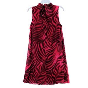 New London Times Women's Tiger Print Mock Neck Bowtie Swing Mini Dress