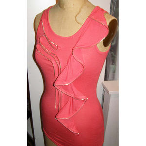 🌺 New Long Coral Tank top by YA with Zipper Ruffle M