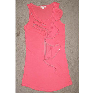 🌺 New Long Coral Tank top by YA with Zipper Ruffle M