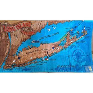 New Long Island Map Bath Beach Pool Gift Towel New York Ocean Beaches 60x30 NIP