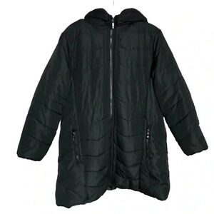 New Look 2X plus-size black hip length puffer hooded coat hooded pockets