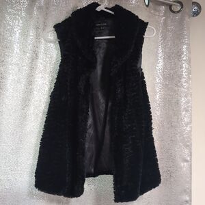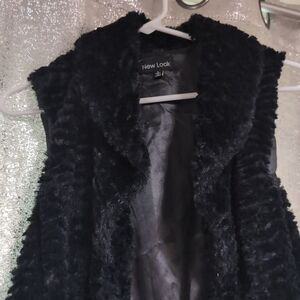 New Look Black Faux Fur Winter Sweater Vest Size L