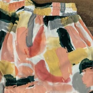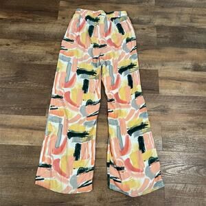 Keywords: New Look, women's pants, wide-leg, multicolor, abstract pattern, elastic waistband, drawstring, casual, rayon, relaxed fit, machine washable.