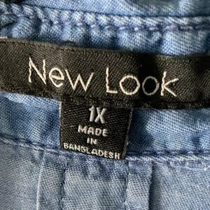 New Look Button Up Tunic Dress Womens 1X Long Sleeve Drawstring Chambray Denim