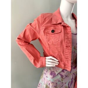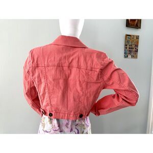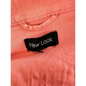 New Look Coral Pink Cropped Jean Jacket Utility Button Up size Small