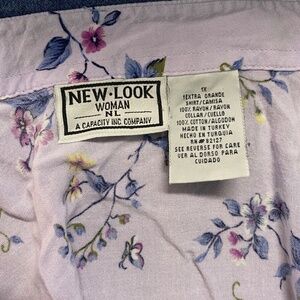 New Look Floral Denim Collar Button Up Shirt (Size: 1X, Color: Lavender/Blue)