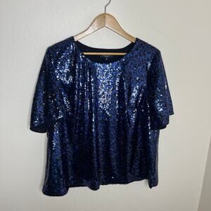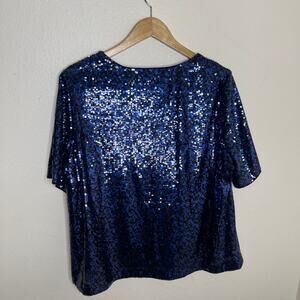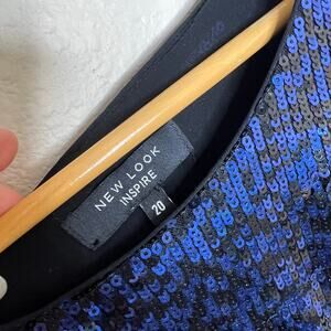 New Look Inspire Blue Black Sequin Top UK 20, US 16. Preowned and in excellent condition. Great top for holiday parties and fancy evenings. Top is blue and black sequins all over. Polyester material. Please see all photos. Approx measurements in pictures.