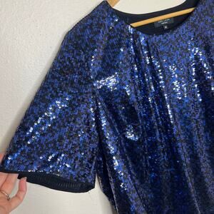New Look Inspire Blue Black Sequin Top UK 20, US 16