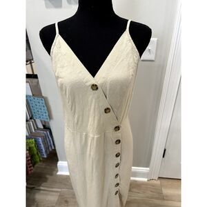 New Look Linen Blend Strappy Midi Dress Neutral Beige Buttons - Size XL