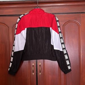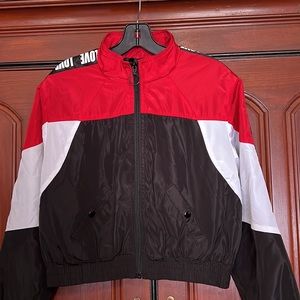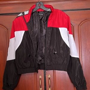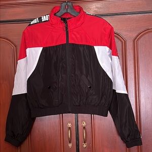 Cute New Look cropped block red, black and white, full zipper closure with ring pull, lined, 2 front pockets with buttons and Love down the shoulder and sleeves with elastic hems on waistband and sleeves! Cute & versatile! If you’d like additional pictures, measurements etc.. please feel free to ask 🥰 I’m always open to reasonable offers and encourage bundling! Thank you so much for taking the time out of your busy day to view my listings 🥰