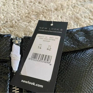 New Look NWT Faux Leather Mini Skirt Black Croc Embossed Full Zipper: 10