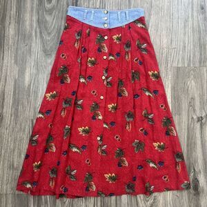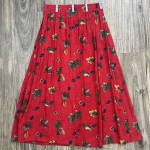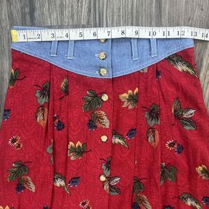 New Look Petites Vintage Red Long Button Front Skirt Red Floral Print Size Medium In Excellent Condition