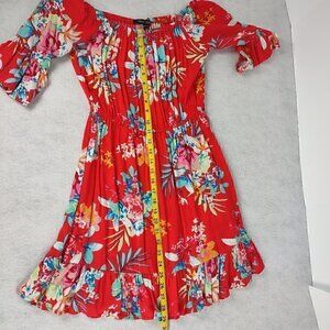 New Look Red, Orange, Blue, White, Floral Mini Dress Size Medium