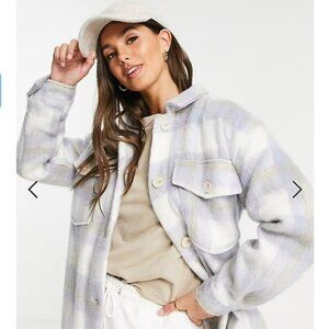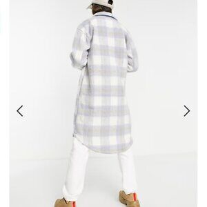 New Look Tall Longline Shacket in Blue Check Flannel ASOS 111953934 Size 8