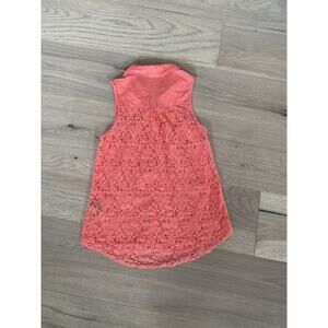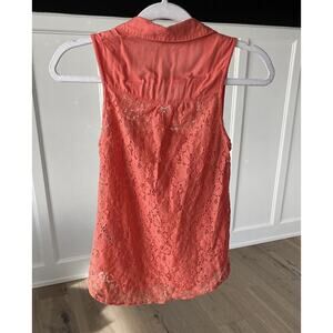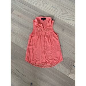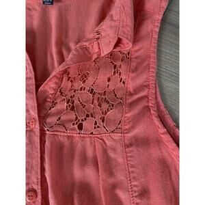 New Look Womens Coral Sleeveless Lace Back Button Up Collared Tank Top Sz Medium